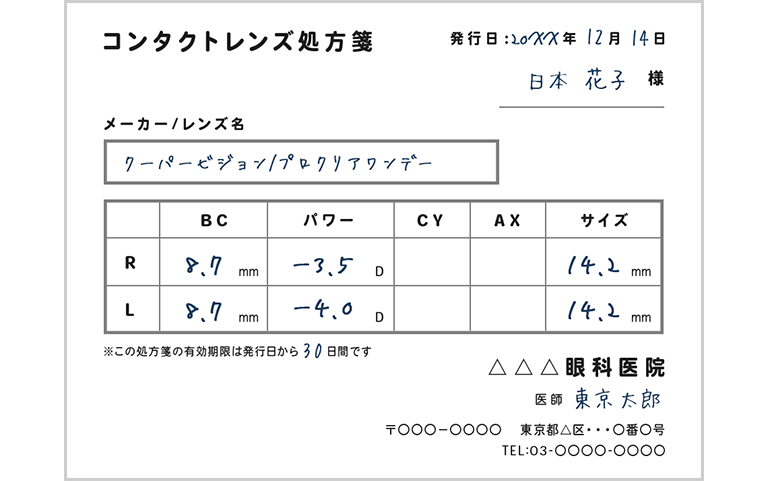 - メガネの処方箋では、コンタクトレンズをご購入いただけないのでご注意ください。